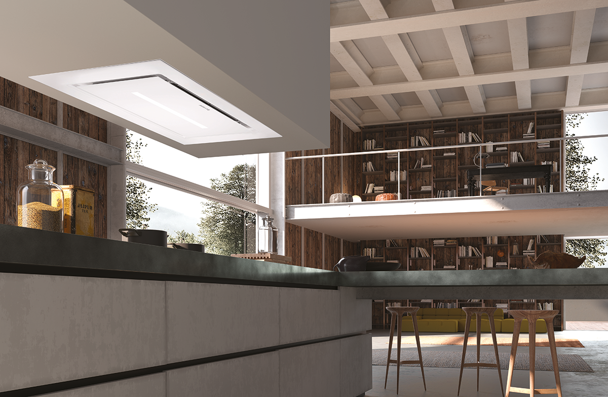 The body of the hood is hidden away inside the ceiling, creating a more refined and elegant kitchen.