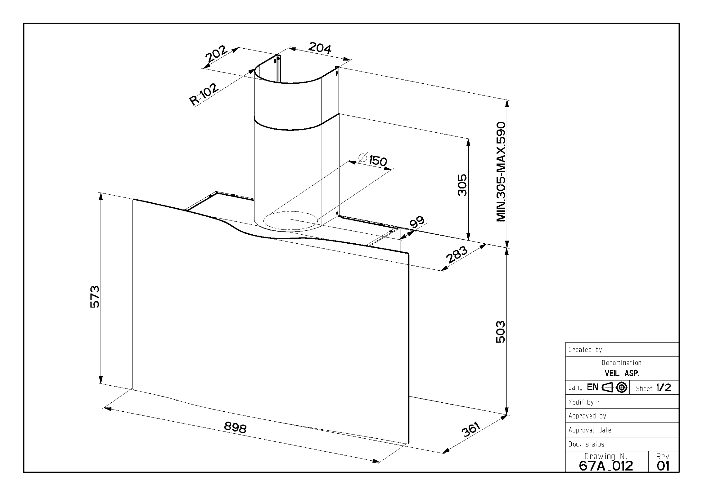 An innovative redesign on the traditional wall-mounted chimney hood, the Veil has been developed to be a true statement piece in the kitchen. Designed in partnership with the Politecnico di Milano in Italy, the Veil’s aesthetics are based on the way that material drapes over a surface, like a Veil.